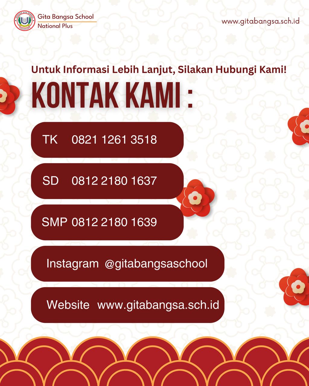 Atur kunjungan anda untuk melihat secara langsung sekolah Gita Bangsa, silahkan hubungi admin via Whatsapp untuk mengatur janji.
